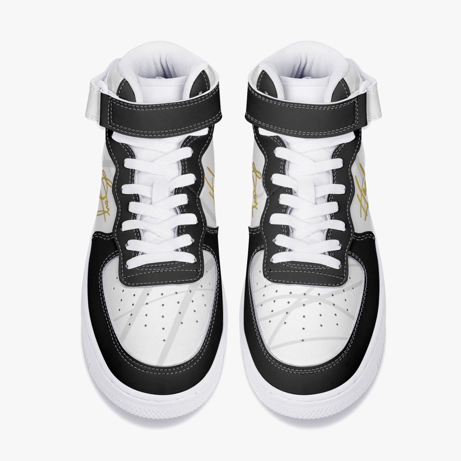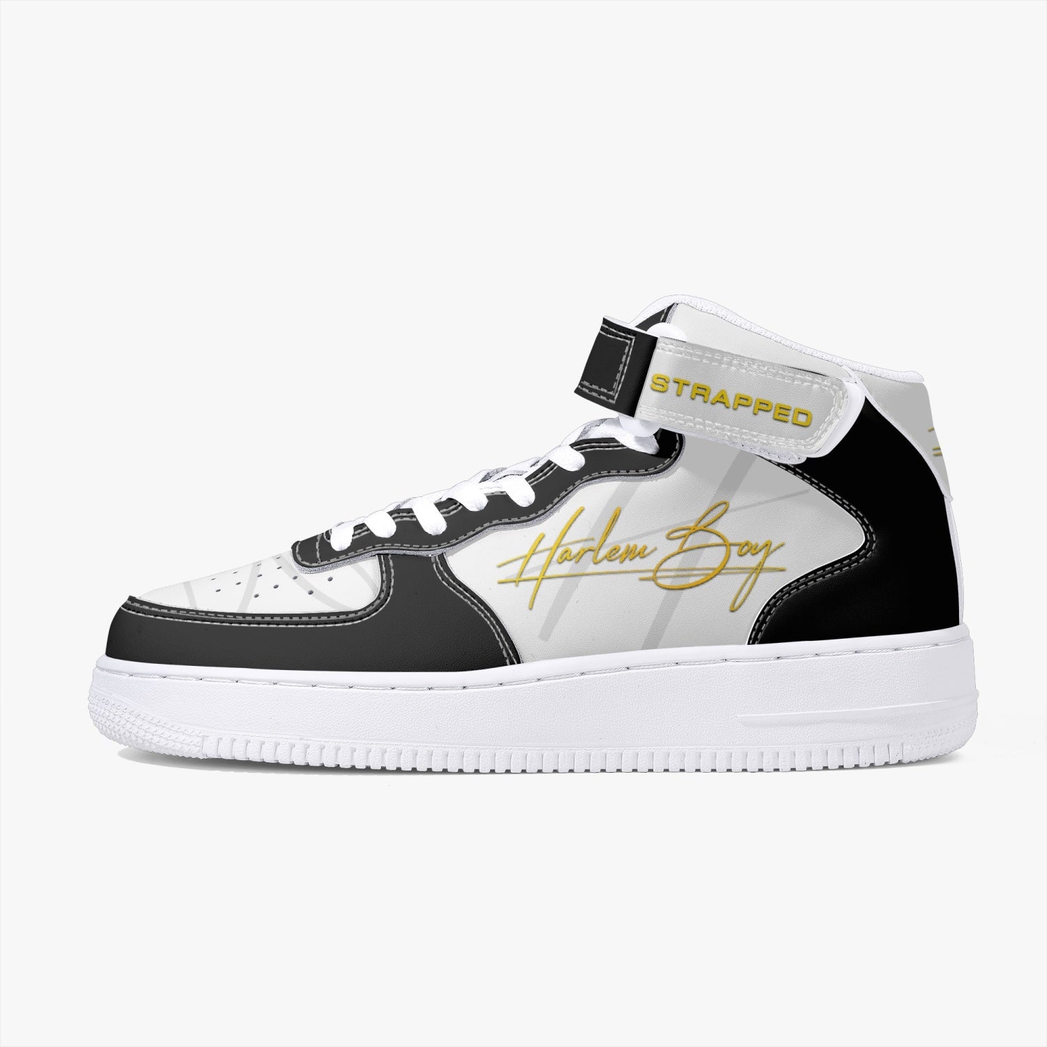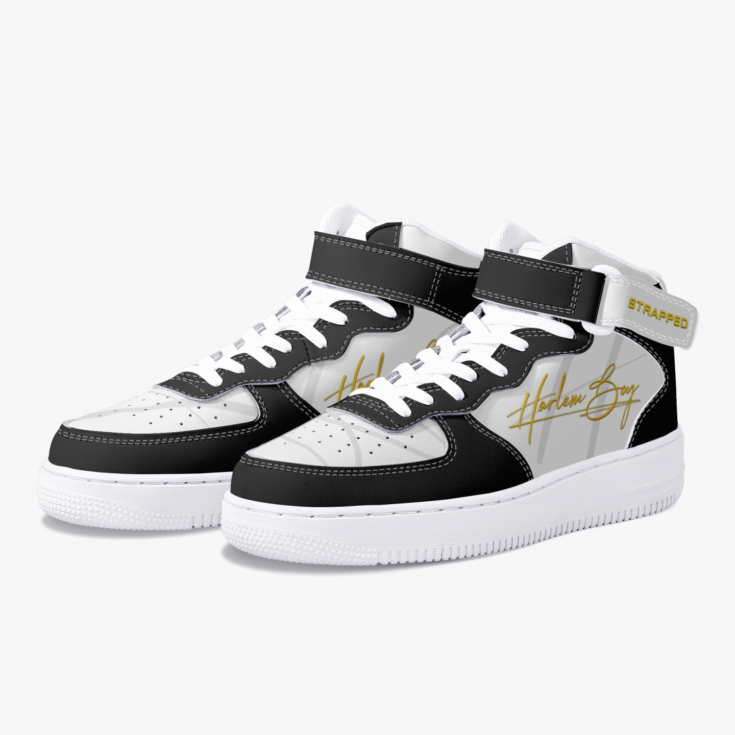 Harlem Boy "STRAPPED" MEN's High-Top Leather Kicks - Black and Gold