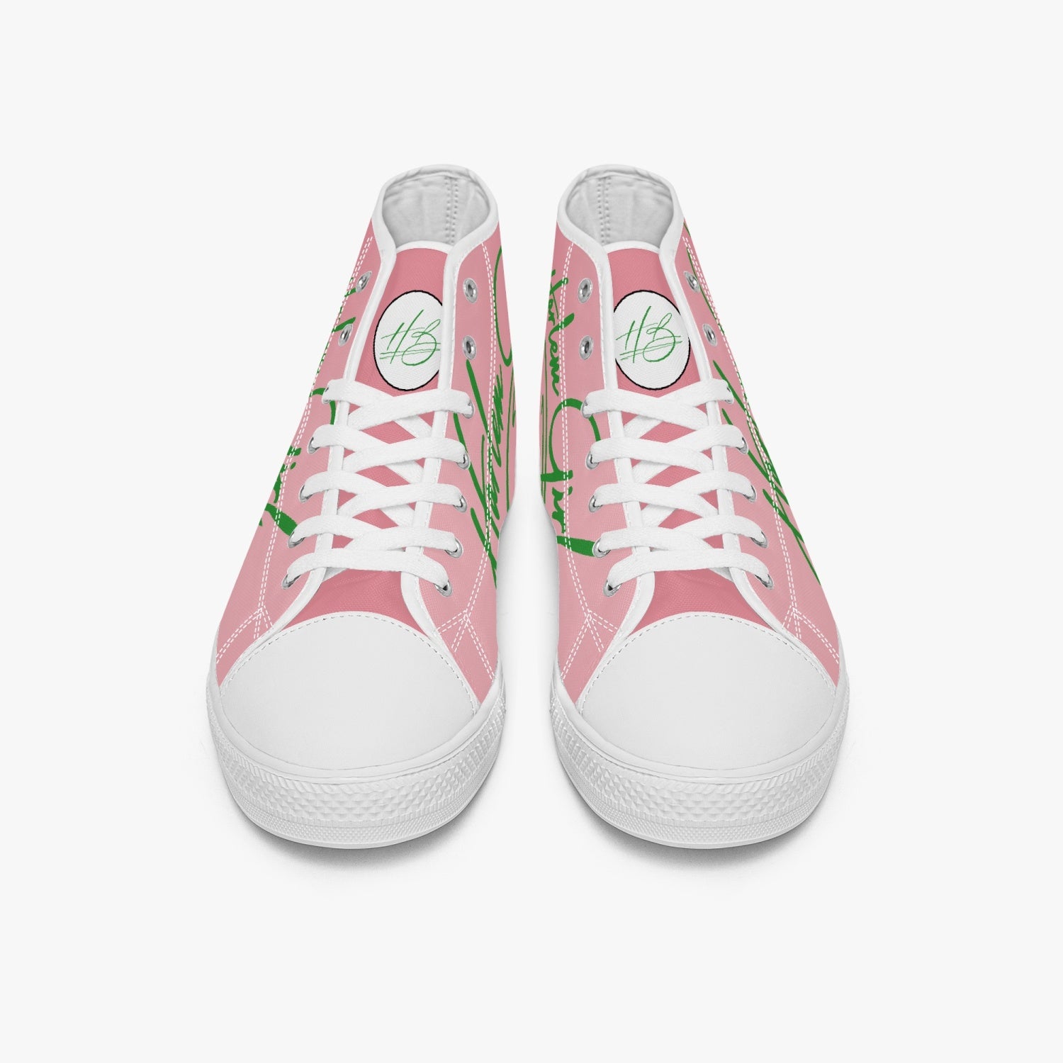 HB Harlem Girl "Lenox Ave" Classic High Top - Pink n Green - Women (Black or White Soles)